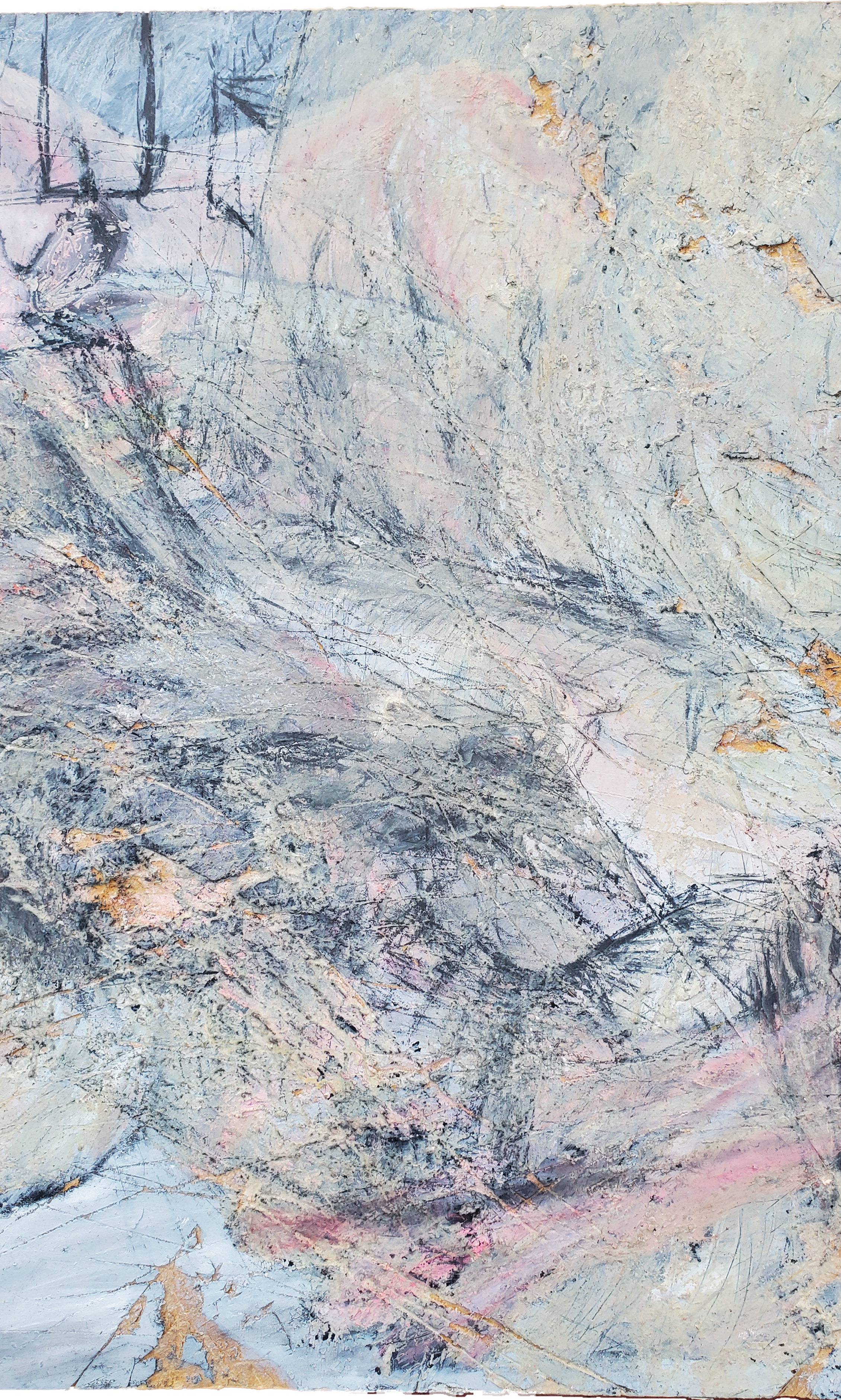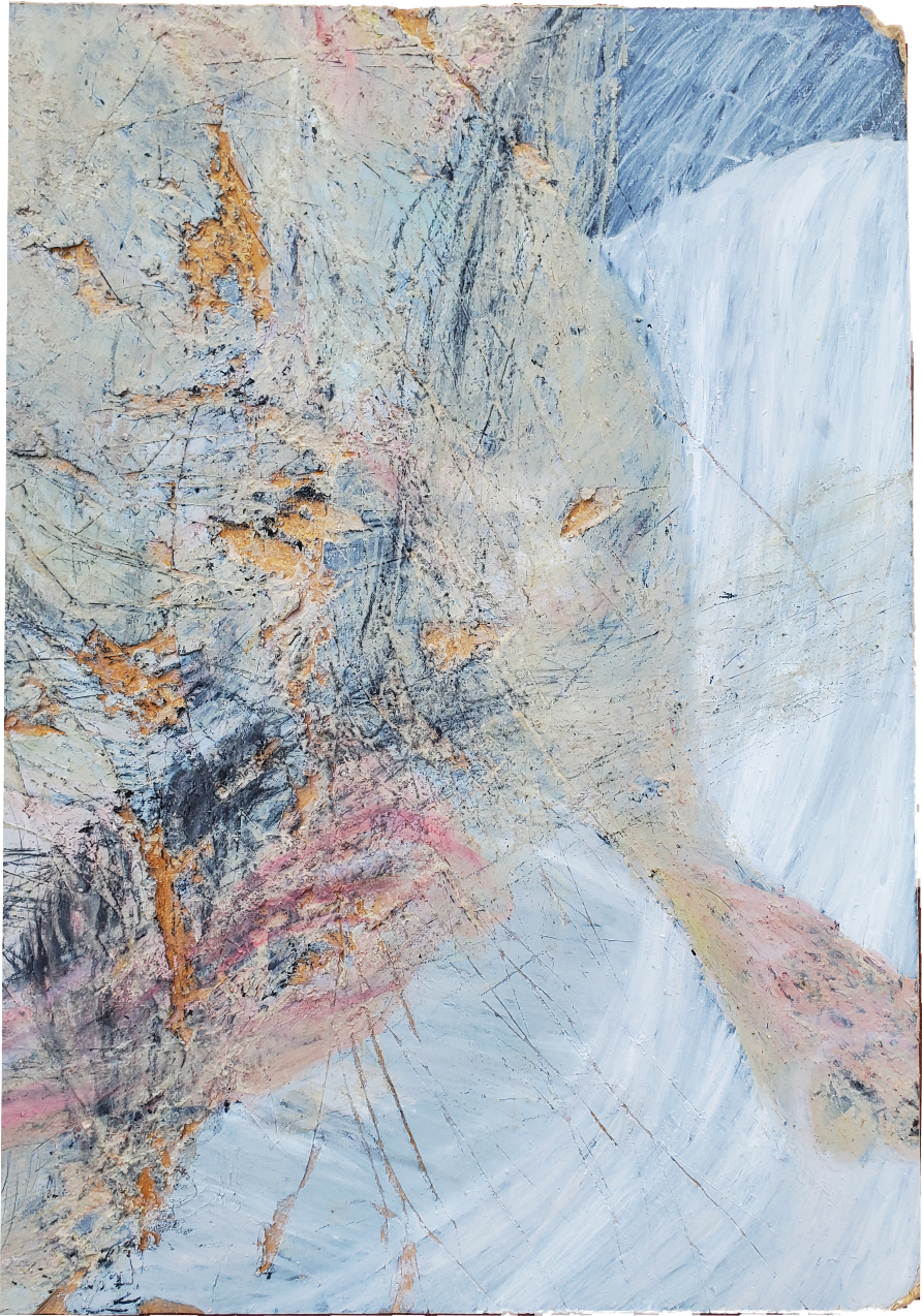 Gesso, Oil, graphite, toothpaste, ballpoint pen, vegetable oil, acrylic medium and Durham’s Water Putty on a discarded stretched canvas
